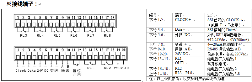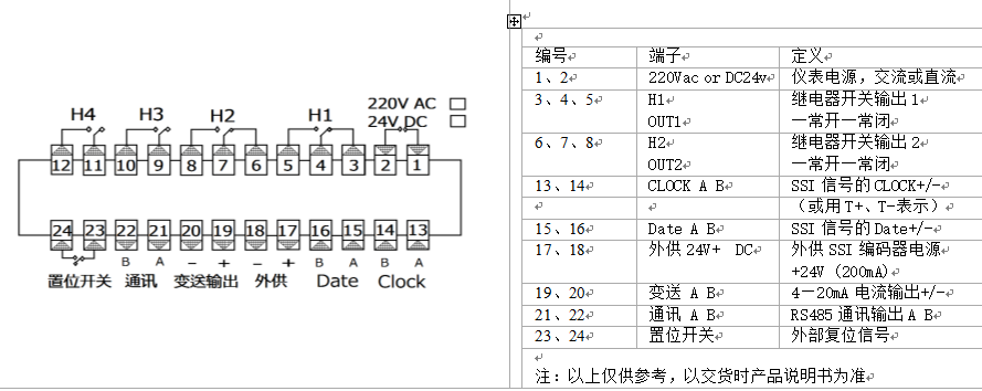 输入信号: 绝对值同步串行SSI信号(单圈、多圈编码器、直线传感器10—26位)